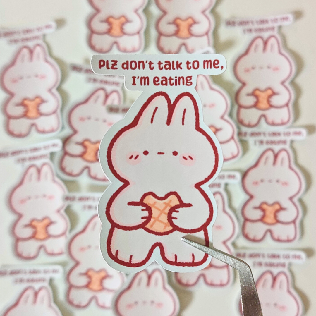 I'm eating vinyl sticker. Not waterproof. Roughly 3 x 5cm in size.